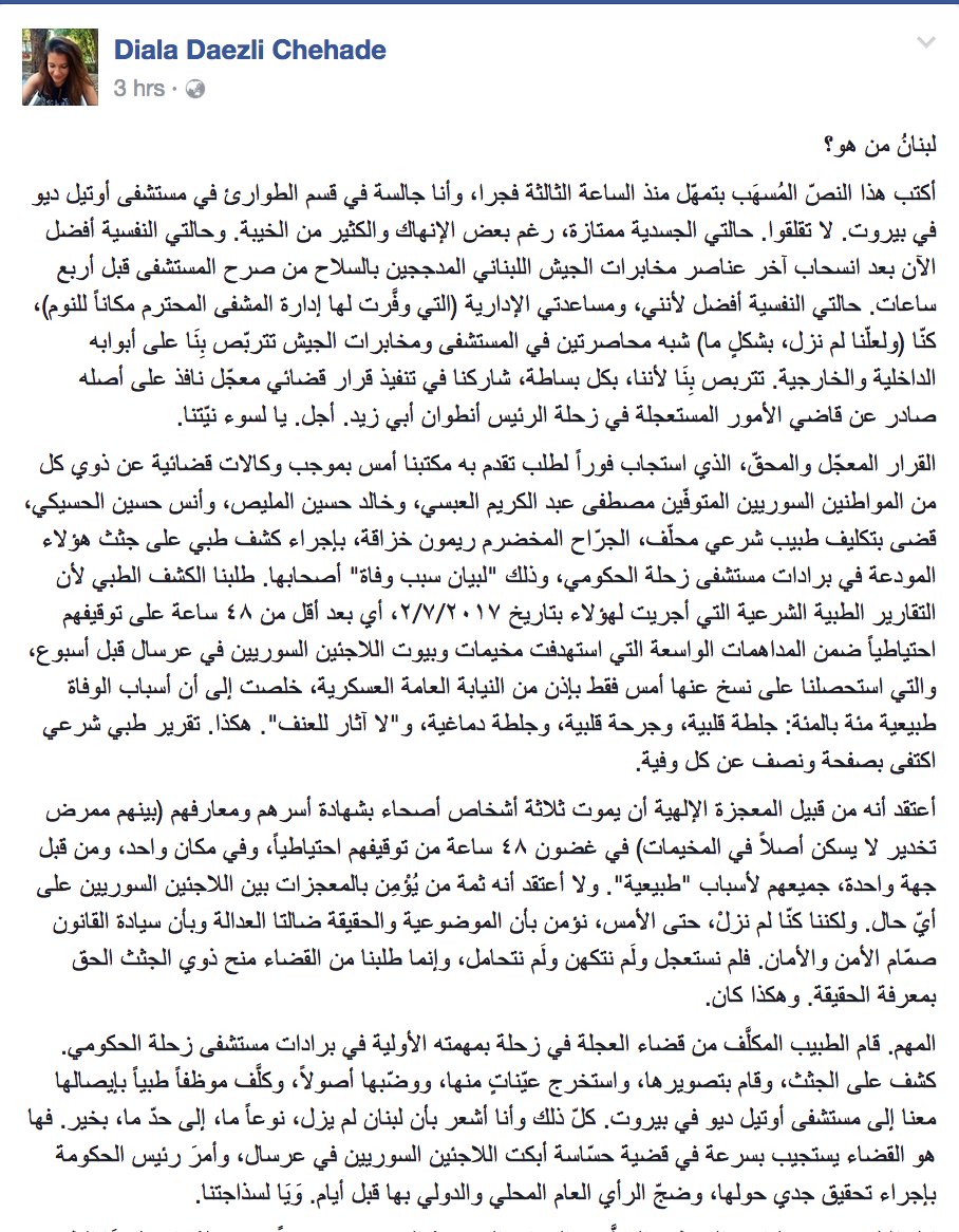 إبراهيم عرب Ibrahim Arab On Twitter المحامية اللبنانية ديالا شحادة تروي ما تعرضت له أثناء متابعتها التحقيق في قضية وفاة لاجئين سوريين لدى الجيش اللبناني Https T Co Nvvjbbvist Https T Co Qhfbc0cpmr