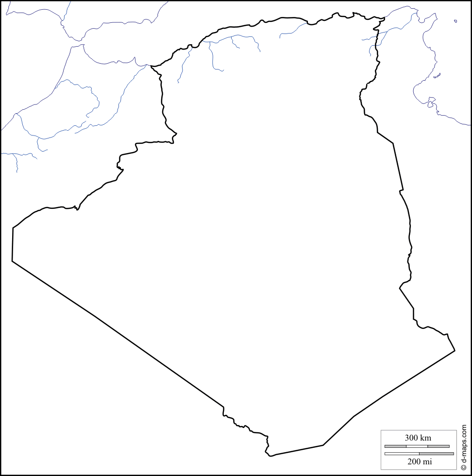 خريطة الجزائر صماء بحجم كبير وحدودها رسم واضح