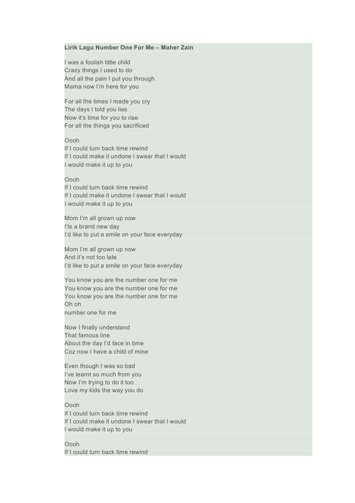 كلمات Maher Zain Number One For Me Lyrics Paroles